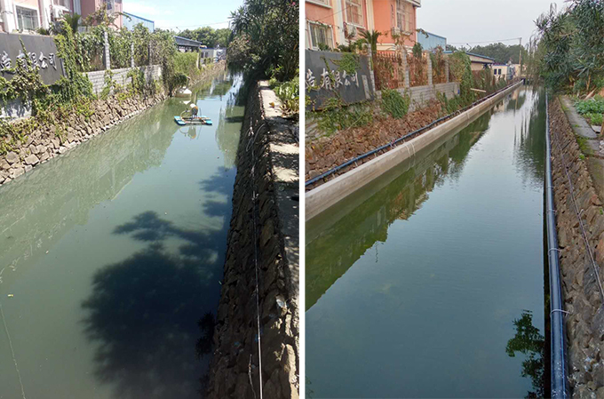 畢家支河治理中、治理后水質(zhì)對(duì)比