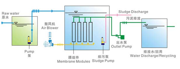 中水回用主處理技術主要包括生物法、物化法及膜分離法。其中生物處理法是利用水中微生物的吸附、氧化分解污水中的有機物,包括好氧和厭氧微生物處理,一般采用多種工藝相結合的辦法;物理化學處理法以混凝沉淀(氣浮)技術及活性炭吸附相結合為基本方式,提高出水水質,但運行費用較高;膜處理技術一般采用超濾(微濾)或反滲透膜處理,其優點是SS去除率很高,占地面積少等優點。