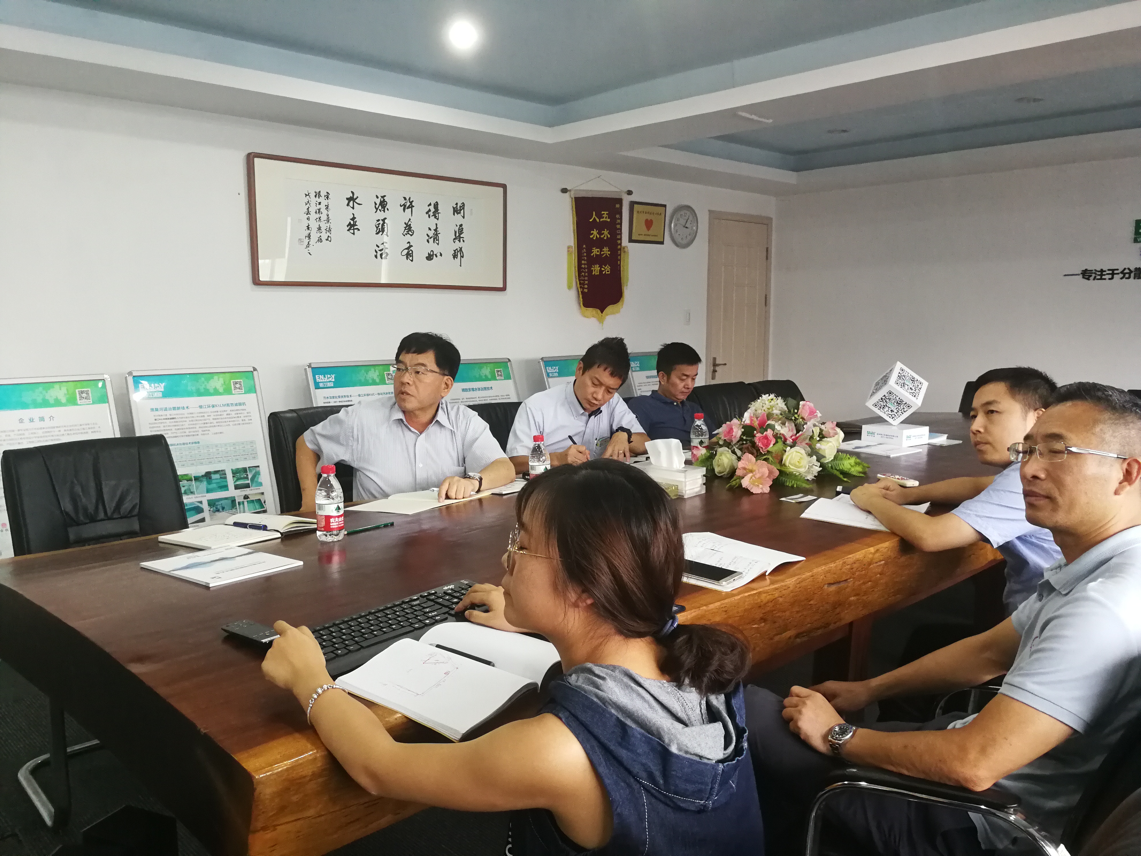 首先,技術部宋陵超向佐野先生等介紹了公司情況,從銀江治水理念,銀江環保核心技術,到銀江成功案例,均令佐野先生贊賞不已。