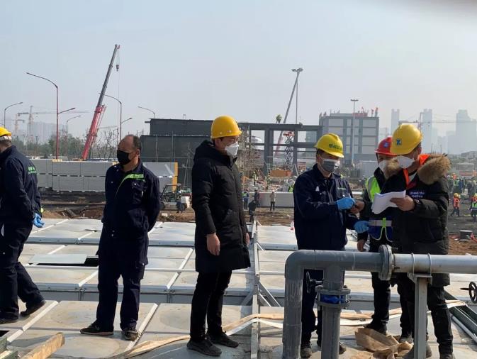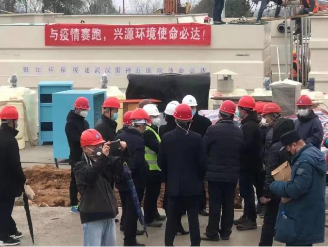 湖北省環(huán)保廳,武漢市委市政府領(lǐng)導(dǎo)視察火神山醫(yī)院污水處理站現(xiàn)場(chǎng)。