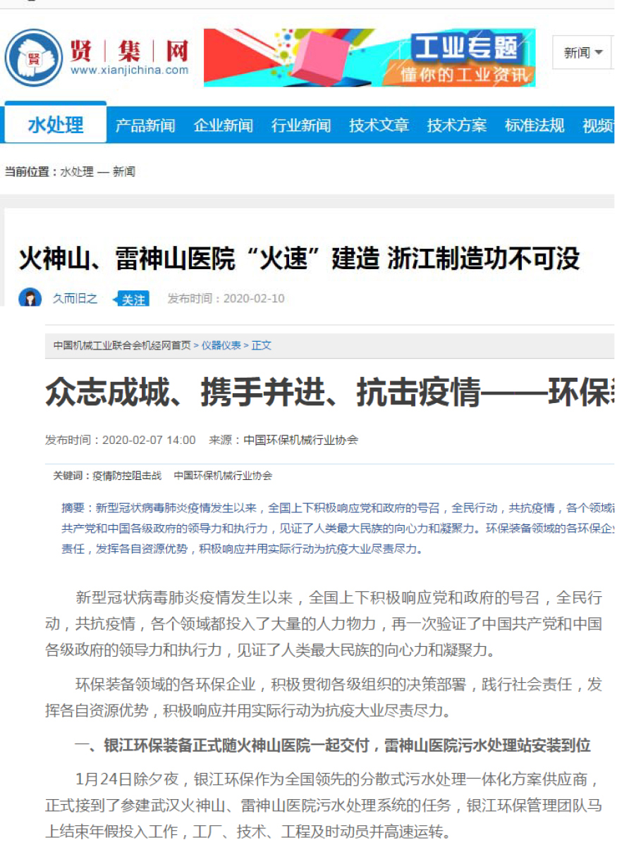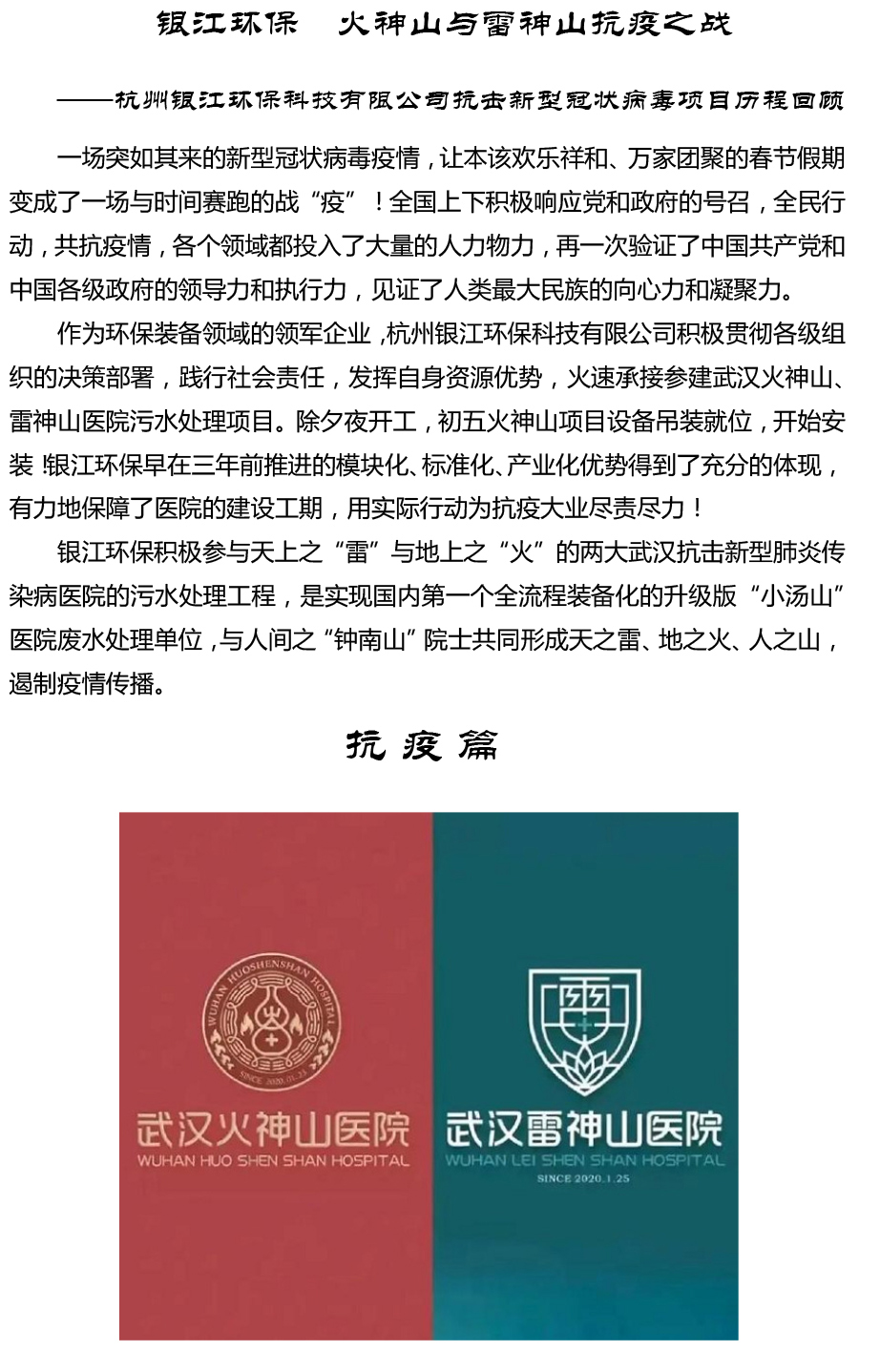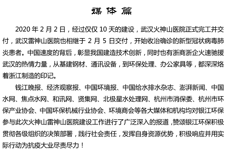 銀江環保?火神山與雷神山抗疫之戰發布日期:2020-03-16