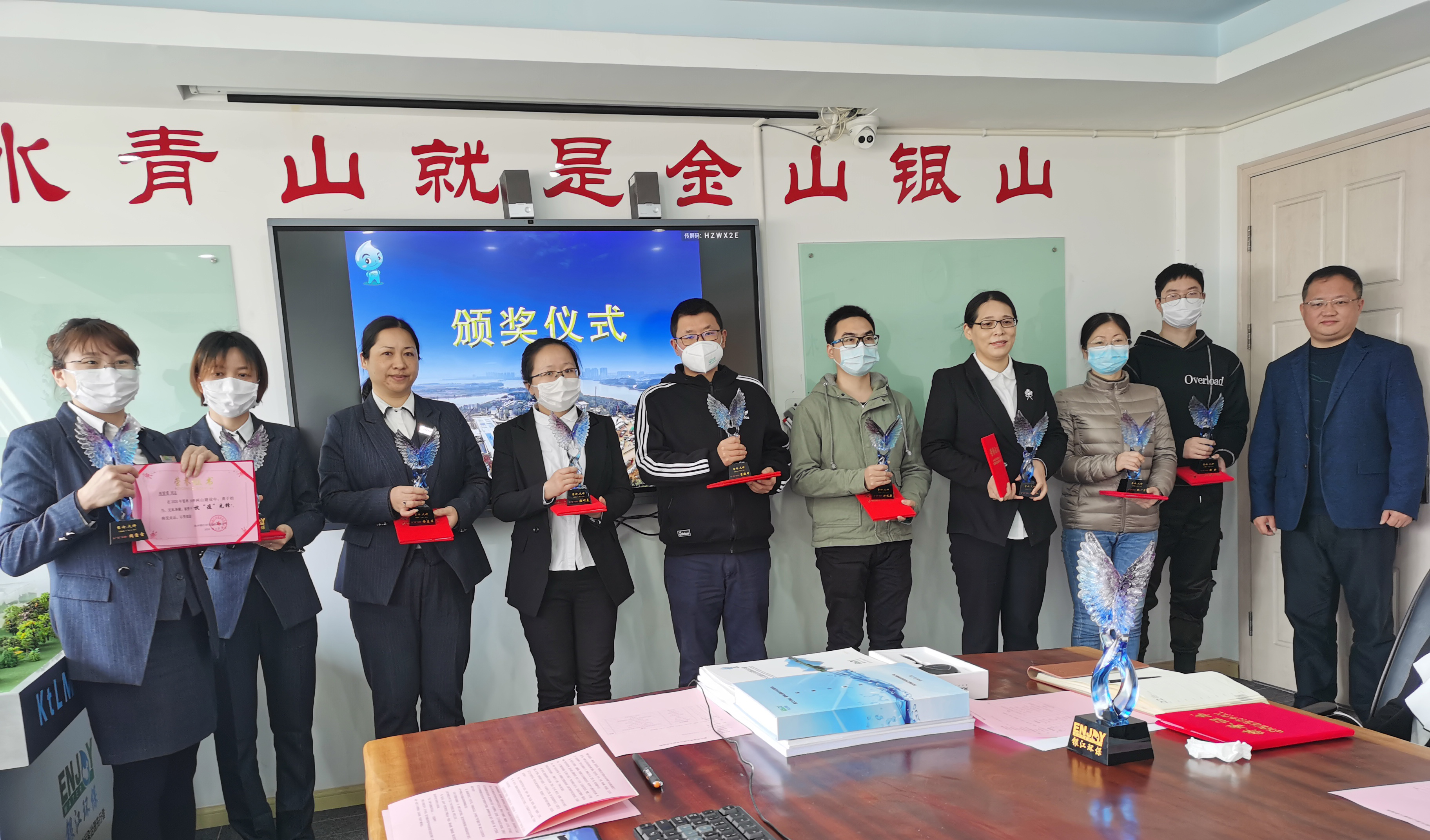 4月7日,銀江環保召開戰”疫“先鋒表彰會,同期召開雷火兩山項目復盤會。