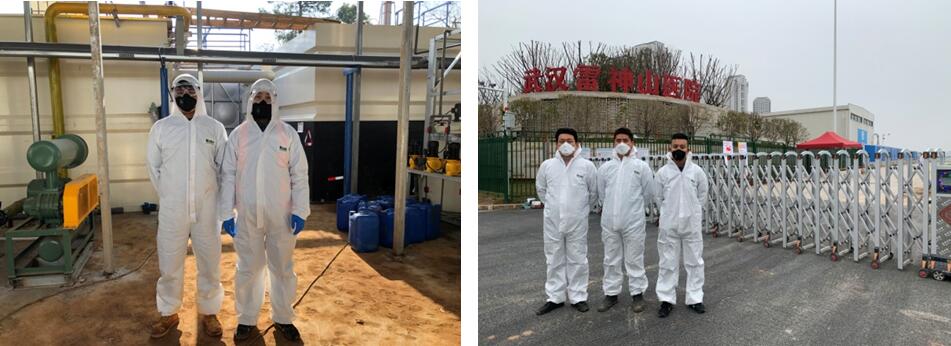 付宇:我和王立軍30號(hào)凌晨2點(diǎn)到武漢,休息了大概5個(gè)小時(shí)直接到雷神山施工現(xiàn)場(chǎng)。到了現(xiàn)場(chǎng)以后看到施工現(xiàn)場(chǎng)幾千人只為同一個(gè)目標(biāo)努力完成工作真的很震撼。因?yàn)?號(hào)整個(gè)醫(yī)院就要移交收治病人,所以給我們的時(shí)間最多只有7天,一周內(nèi)需要完成污水站的安裝工作并且將所有設(shè)備的調(diào)試正常,因此我們的計(jì)劃安排需要精確到以小時(shí)計(jì),每一個(gè)小時(shí)計(jì)劃完成什么事,每一項(xiàng)工作哪天幾點(diǎn)完成,完成每一項(xiàng)工作需要多少工人,當(dāng)天都需要完成什么工作都要明確。趁每次吃飯的時(shí)間,幾個(gè)人還要和施工負(fù)責(zé)人梳理目前工作任務(wù),再確定接下來(lái)的工作安排。幾個(gè)同事都是連著幾天在施工現(xiàn)場(chǎng),累了只在工地車上睡一下。通過(guò)公司各部門同事共同努力,6號(hào)整個(gè)安裝工作完成。調(diào)試階段的問(wèn)題大家一起想辦法,方明也從火神山趕過(guò)來(lái)支援,終于在7號(hào)把整個(gè)系統(tǒng)調(diào)試正常。