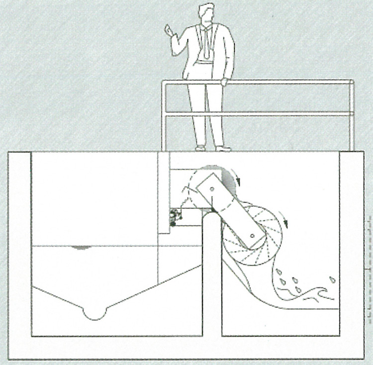 水力自潔式滾刷是一種能夠高效截留降雨時合流管道溢流雨水中的懸浮物和漂浮物的裝置。易于在現(xiàn)有排水口溢流堰上改造安裝,通過水輪驅(qū)動,無需外動力。可以有效地保證溢流雨水的清潔,防止自然水體受到污染。運(yùn)行原理