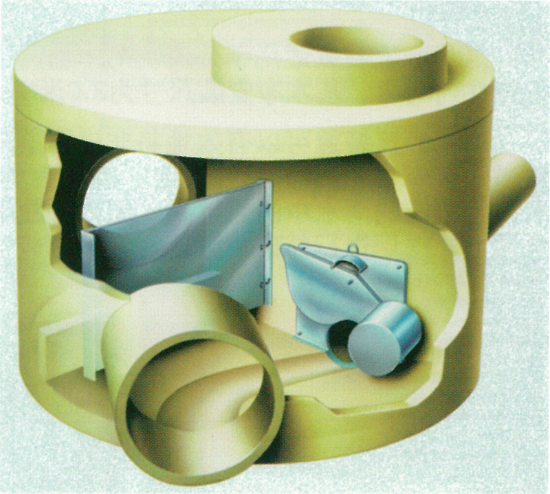 管渠分離器用于排水量的分配。它適用于合流/分流排水系統(tǒng),根據(jù)不同工況,構(gòu)筑物設(shè)計也有所區(qū)別。分流構(gòu)筑物包括排水調(diào)流閥、溢流堰和擋板。如果對分流水量精確度要求不高,則可采用浮游式節(jié)流器(Hyd roLimite r)。如果對截留漂浮物的要求不高,也可不用擋板和底堰板。
